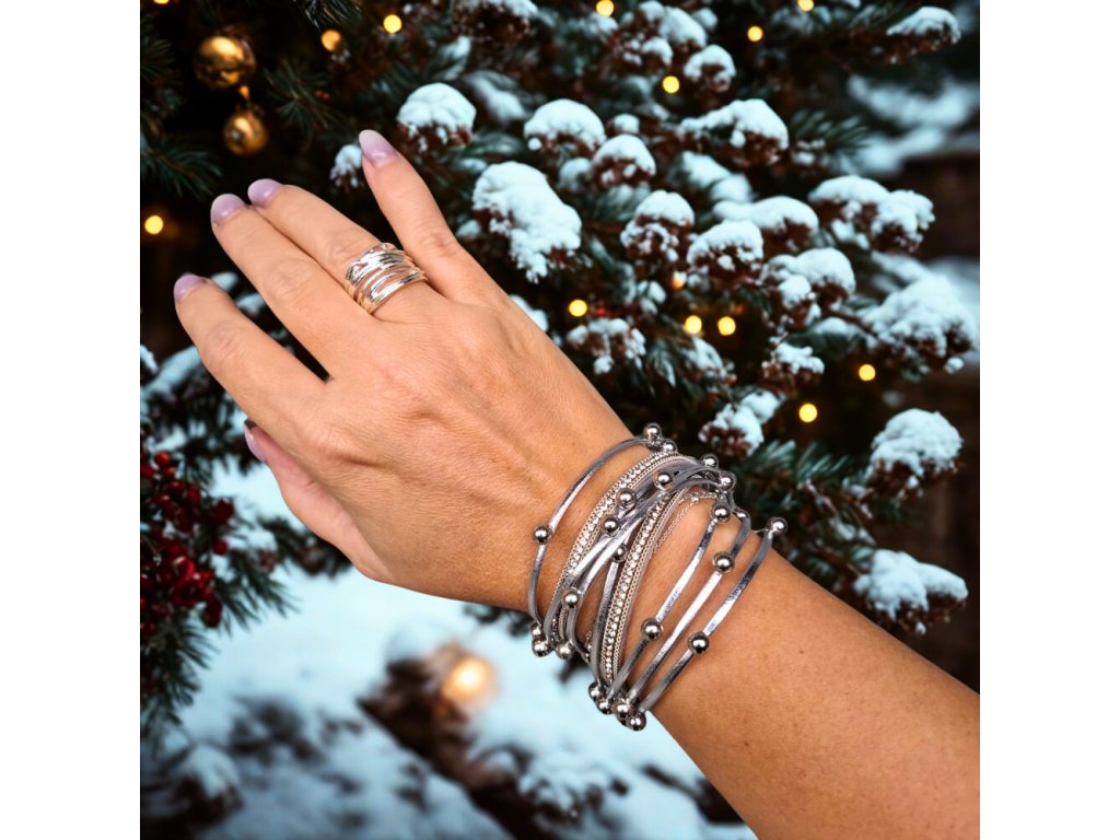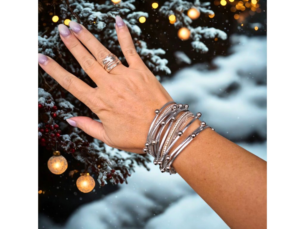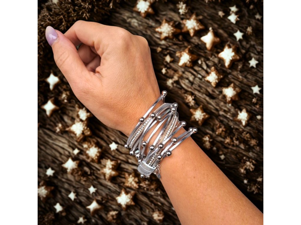 Vícevrstvý náramek z umělé kůže – stříbrný